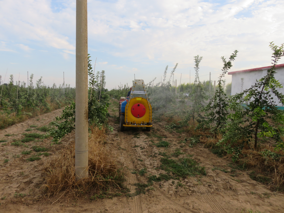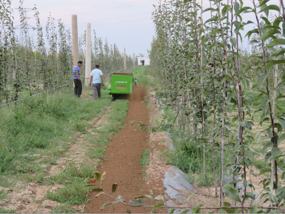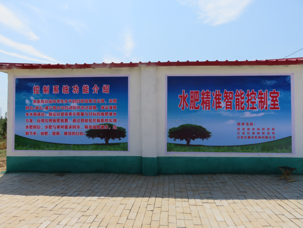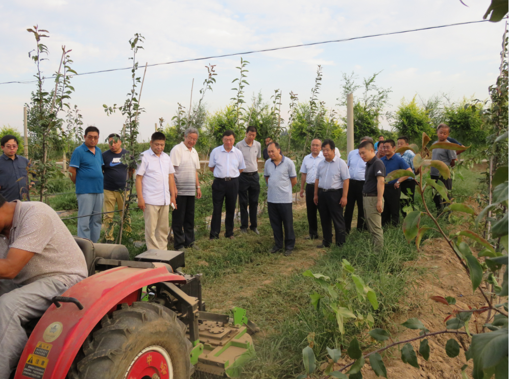 武邑示范基地,研制安装了果园智能化精准水肥管理首部装备,采用改良小管出流微灌方式,根据栽培模式示范了密植纺锤形果园毛管顺钢丝水平放置模式,研究确定果园“三适一降”关键技术,构建了果园节水提质标准化技术体系。实现了果园年亩节水78立方米,减少肥水管理用工76.5%。同时进行了果园机械装备研制与示范,研制出了果园自动对靶弥雾机、避让式果园除草机、开沟施肥搅拌填埋一体机等,节省果园管理用工64.5%。