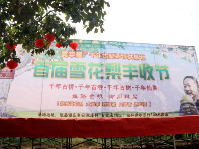 赵县安家庄示范园主栽品种雪花梨,树龄40年左右,并有部分百年以上古梨树。经树体改造,树高控制在3.5米以下,亩产控制3000kg;采取增施有机肥、行间生草等措施提高土壤有机质,配施中微量元素肥;注重农业、物理等病虫害绿色防控措施。所产梨果获绿色食品认证、河北省优质产品称号。注重品牌建设和市场营销,注册商标“冀华星”,积极参与各种农产品展销会和媒体宣传,举办赏花、采摘活动,冀华星果品专业合作社已成为集绿色生产、旅游观光、品牌营销为一体的新型现代农业经营主体。