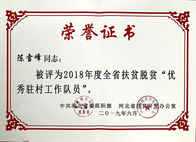 2018年3月,按照院、所关于脱贫攻坚统一安排部署,陈雪峰来到张家口市崇礼区清三营乡朝阳村开展驻村帮扶工作。