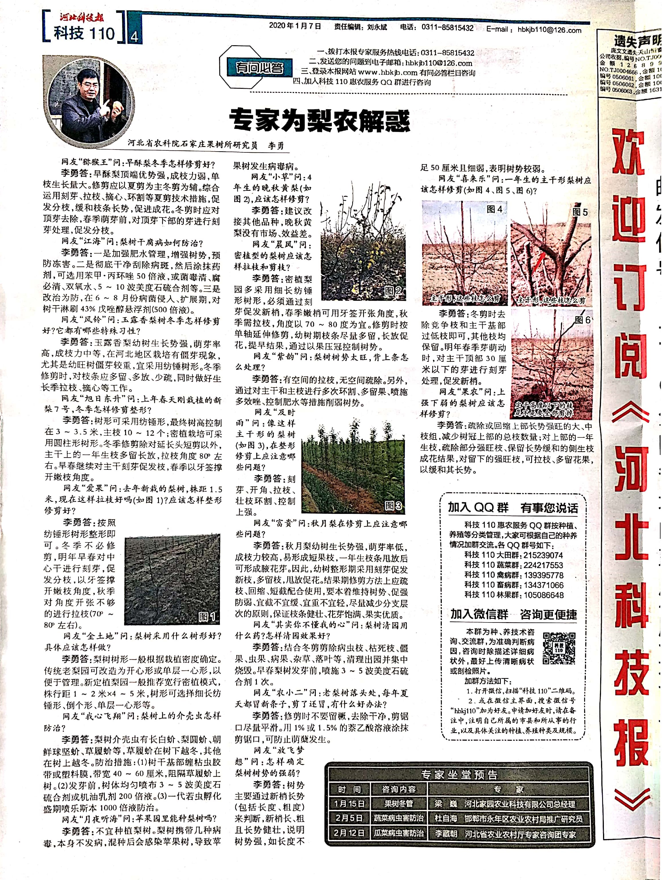 河北科技报刊登李勇研究员为果农解疑答惑