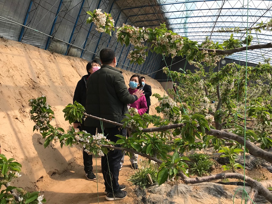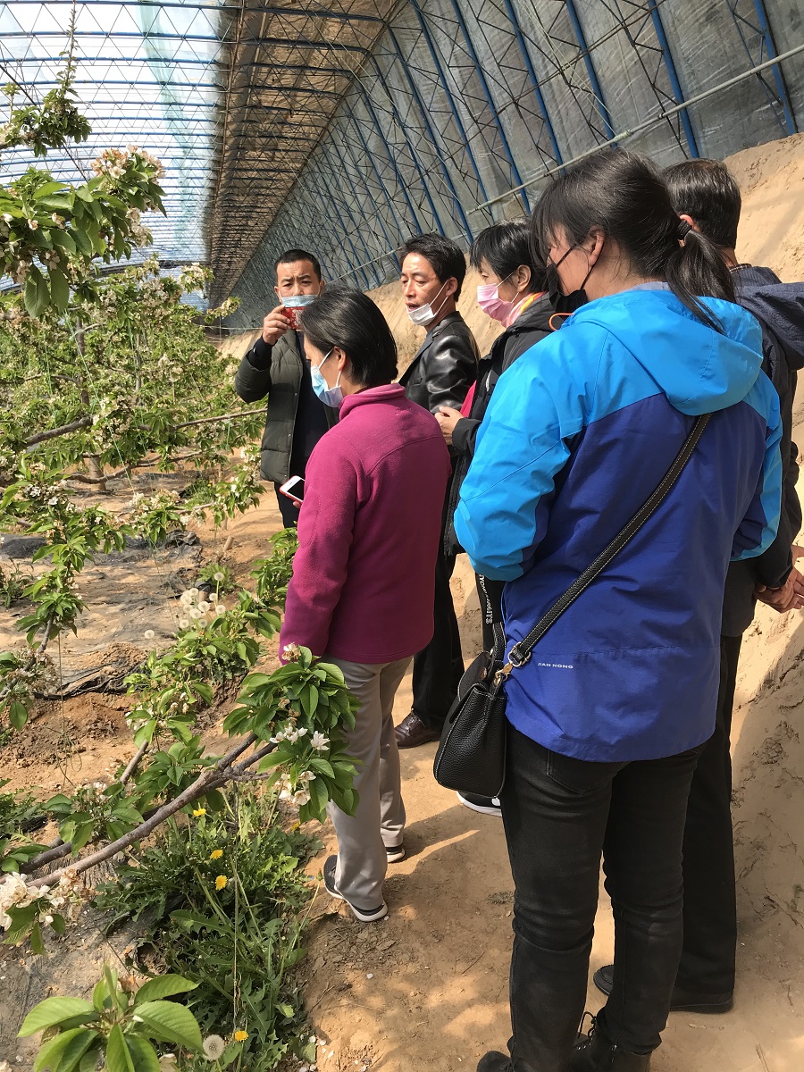 在基地,科研团队实地查看了杏花芽萌发情况及接穗存储条件,对园区杏花期管理及后续的嫁接工作提出了建议。会同巨鹿县林业局工作人员,考察了园区樱桃、桃等温室大棚,并对樱桃出现的黄叶状况进行了解析,提出具体的技术建议。