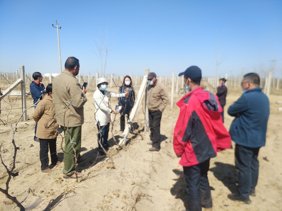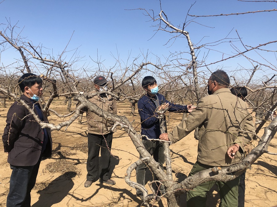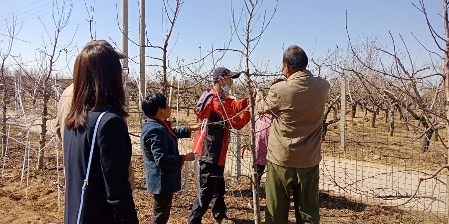褚凤杰副所长一行实地考察了赤支村苹果、梨、设施葡萄和桃等园区,对苹果、桃、葡萄园新型栽培模式构建、春季修剪技术等进行了讲解,对新建园提出了合理化建议,对该村栽植技术进行规范化指导。