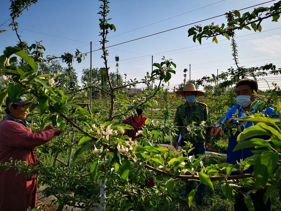 3.灾后管理:加强肥水管理,增强树势,通过叶面补肥,快速恢复树体生机,可叶面喷施0.3-0.5%尿素、 0.2-0.3%硼砂或其他叶面肥料,结合灌水增施有机肥和化肥,提高树体营养水平;停止疏花,以后期疏果为主;对未受冻花和晚花实施人工授粉,提高座果率;加强病虫防控,及时防止金龟子、蚜虫、食心虫及霉心病、黑点病、腐烂病、斑点落叶病等对果树的危害。