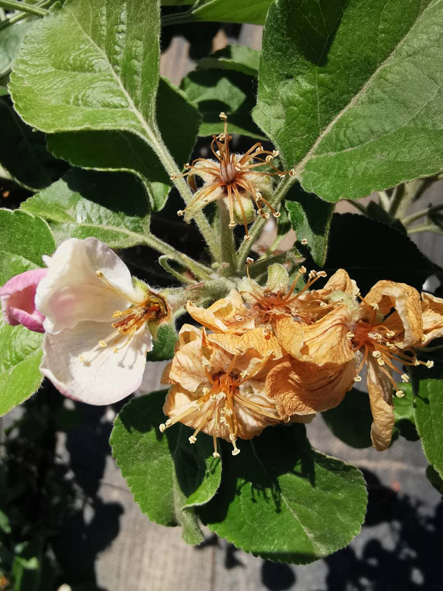 经对受灾地区的调查发现梨、桃、杏、葡萄的受害程度均高于苹果;在苹果上,花期较早的王林及早熟品种等几乎不受影响,正值盛花期的富士受影响较大,花瓣、柱头、子房、幼叶出现了不同程度的冻害;此次冻害较4月10日降雪相比,范围要广,受灾情况更为严重。