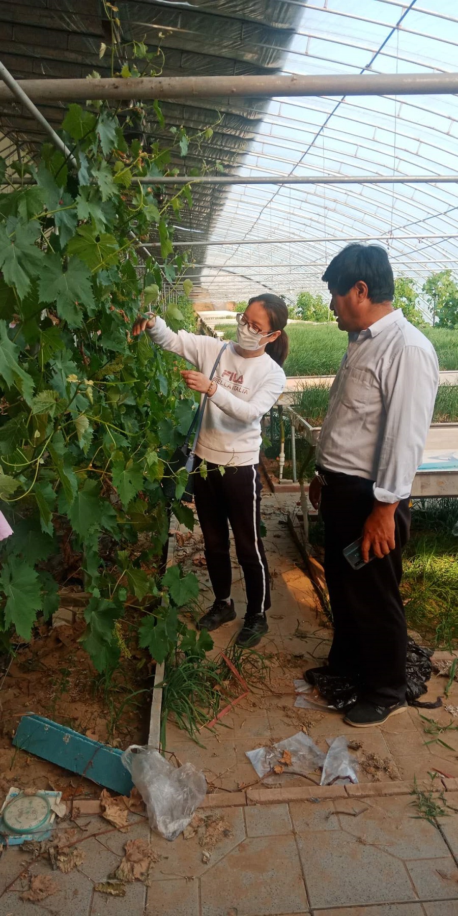 随后,褚凤杰副所长携我所专家团队实地考察了公司设施葡萄园区,对葡萄园新型栽培模式构建、葡萄修剪技术等进行了讲解,对园区提出了合理化建议,对栽植技术进行了规范化指导。