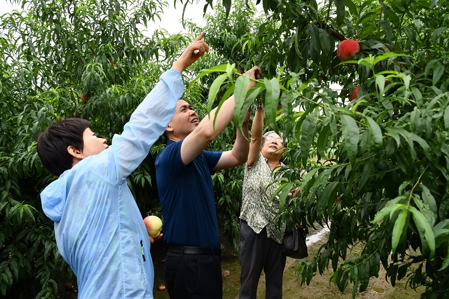 河北省林业和草原局种苗管理处处长金伟、河北省林草推广技术总站站长李利江、河北省国有林场和林草种苗工作站站长王印肖以及我所庞昭进所长、科技管理科和桃研究室全体成员参加了此次现场测试。