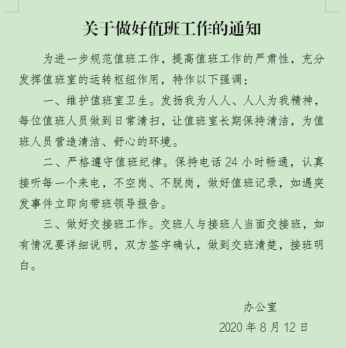 关于做好值班工作的通知