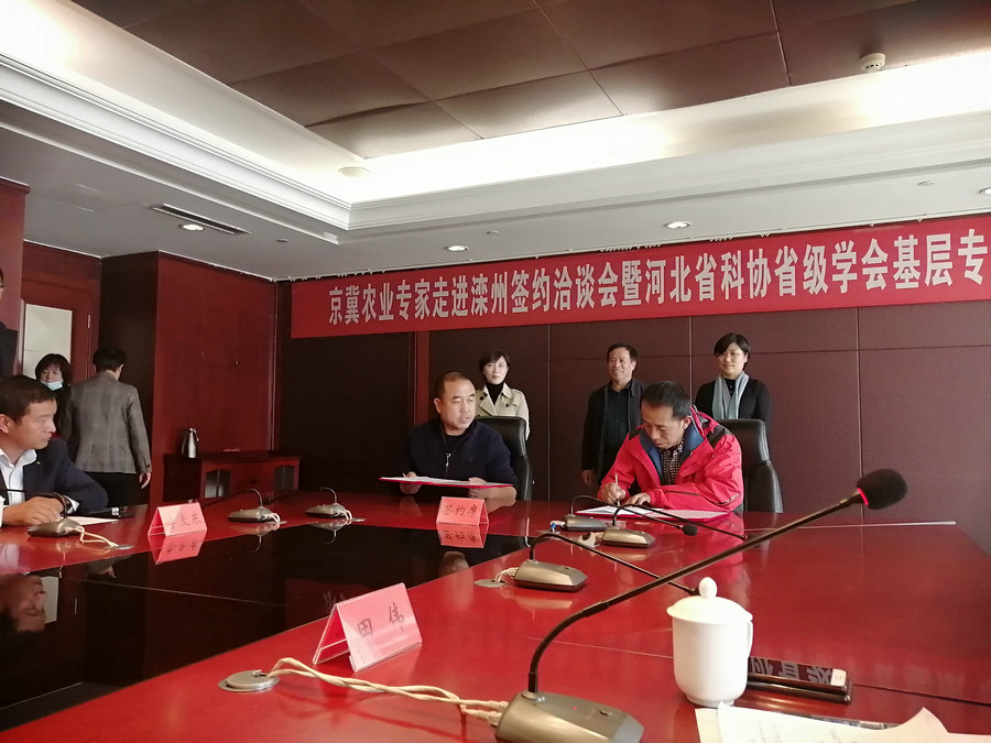 河北省农技协秘书长闫芝莉、滦州市委组织部副部长李戎元以及疏菜、花生、中药材、核桃、养鸡等京冀农业专家,滦州市对按企业园区负责人等共30余人参加了此次签约授牌仪式。