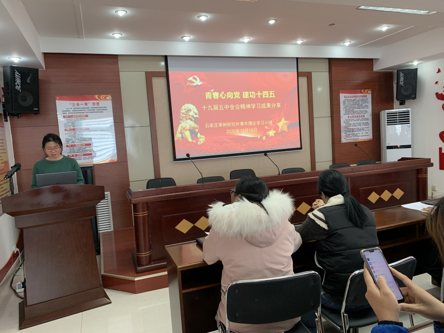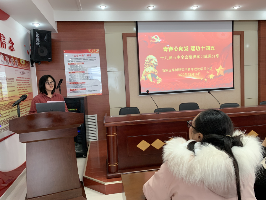 您所在的位置:首页 > 综合动态 2020年12月16日下午,石家庄果树所青年理论学习小组开展了“青春心向党· 建功十四五”学习活动。青年党员代表刘志琨为大家讲述一堂题为“农科青年守初心建新功”的微党课,王玉姣、马筱建、魏薇、牛早柱四位青年团员分别分享了学习十九届五中全会精神的心得体会。