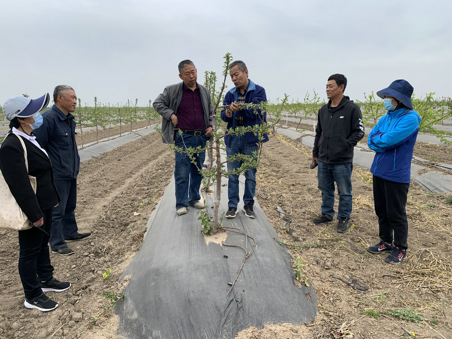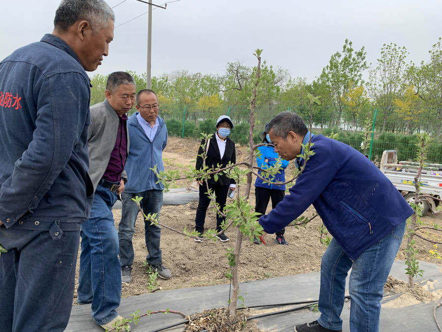 4月21日,石果所党总支书记褚凤杰带队、副所长冯建忠等6名相关科技人员组成服务团与沧州临港中捷农业发展有限公司以党建、科技服务为主要内容开展结对共建和科技服务活动。双方就党建工作进行了深入探讨交流,签订了支部结对帮扶共建协议。冯建忠副所长为当地果农就苹果修剪技术进行了现场示范指导,并解答果农提出的问题,对果树管理要点提出了针对性、可行性建议;查看了育苗基地出苗情况,针对果苗枯萎等问题,提出了应对措施和解决方案。
