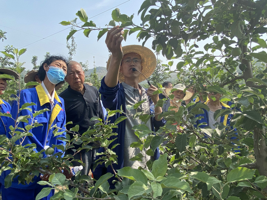 您所在的位置:首页 > 科技服务 开展党史学习教育以来,我所专家积极践行“我为群众办实事”实践活动,2021年5月22日,河北省现代农业产业技术体系水果创新团队苹果岗团队成员、石果所苹果栽培研究团队专家赴石家庄市鹿泉区大桓渊果园开展山地苹果高质量发展技术培训。