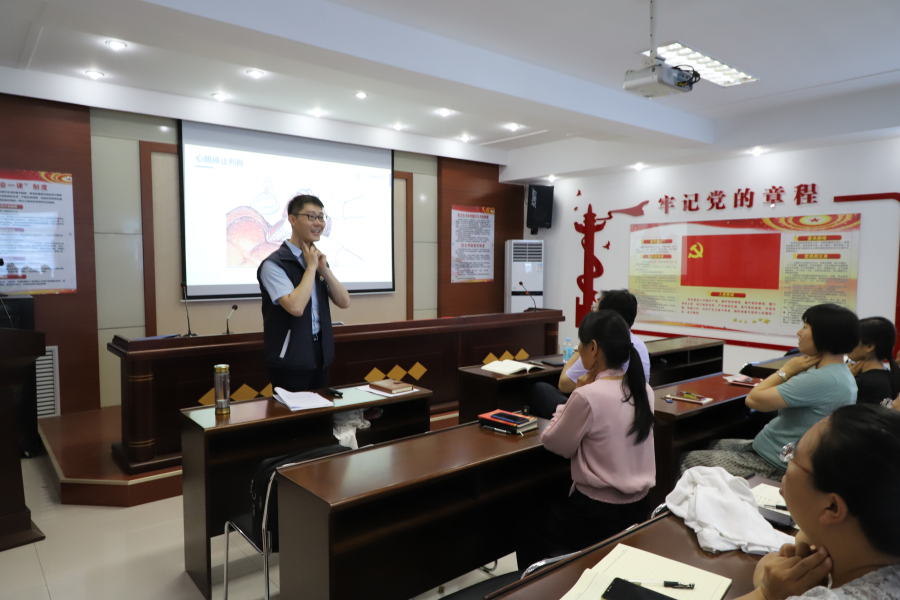 讲座现场,朱老师对心脑血管常见病,如脑卒中、高血压病等疾病的症状、用药及护理知识进行了详细讲解,并建议大家要树立“预防为主、治疗为辅”的理念,提高健康意识、坚持体育运动、保持规律生活,从而形成健康的生活方式。朱老师还对应知应会的基础急救操作进行了现场示范,大家也积极参与进行互动。