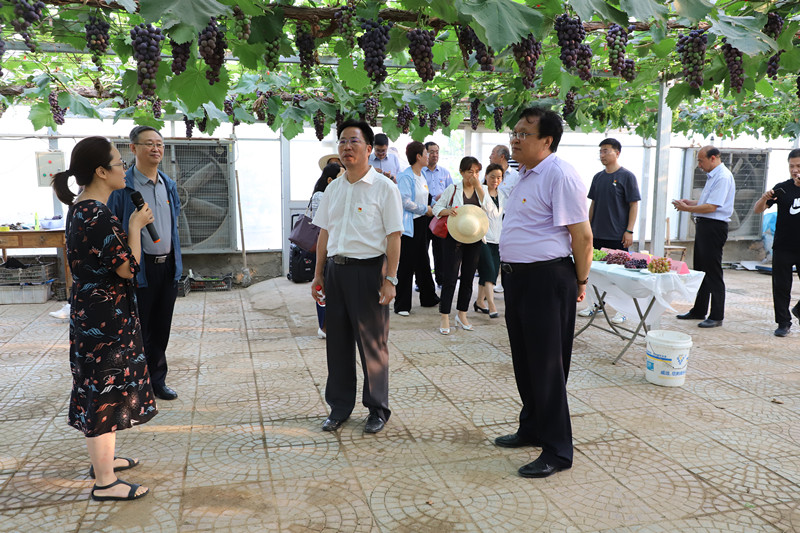座谈结束后,大家冒着酷暑参观了石果所试验田,听取了桃、梨、草莓、葡萄、杏等研究室负责人的工作汇报。省科技厅李丛民副厅长对石果所果树育种工作给予高度评价,也给出了有针对性的指导意见。