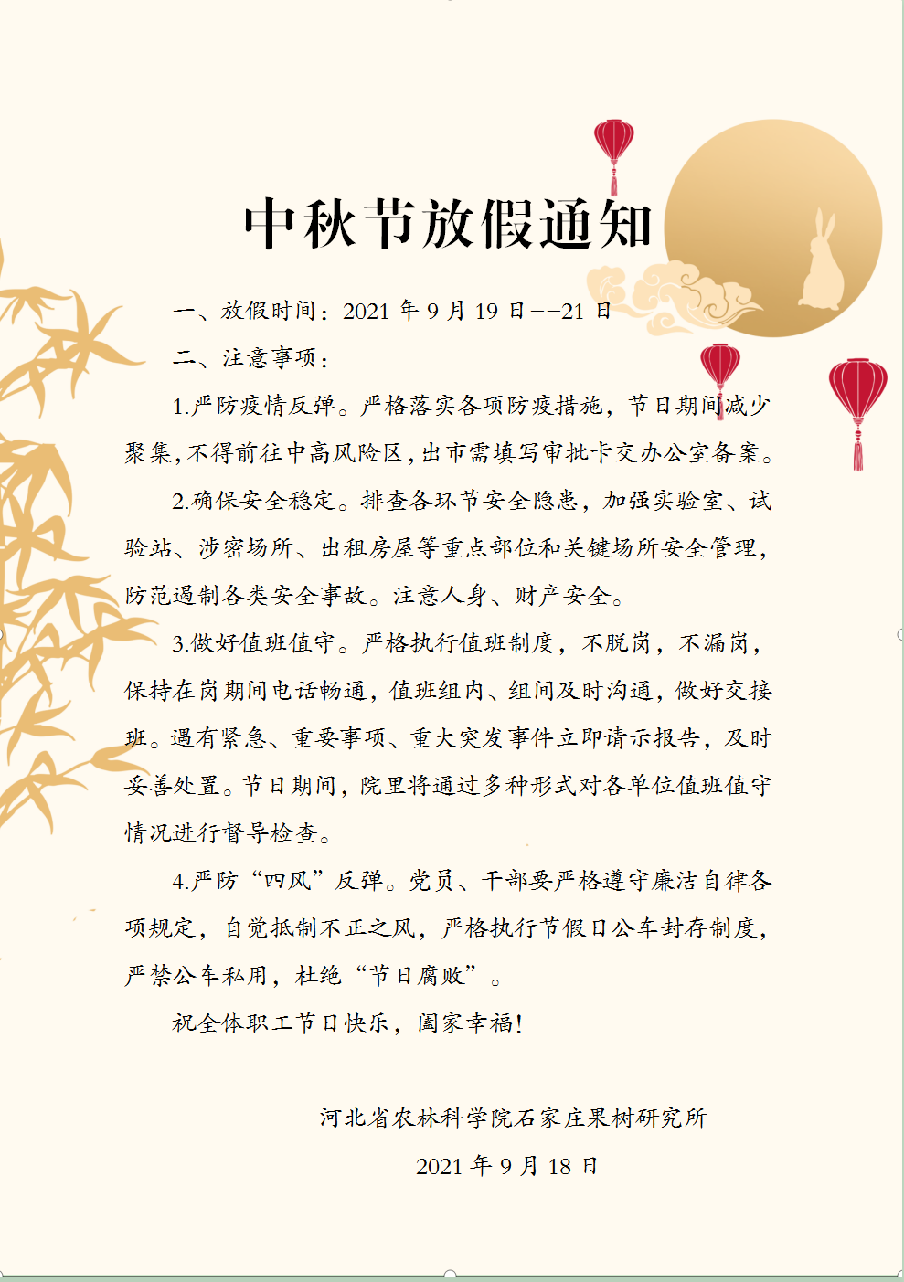 中秋节放假通知