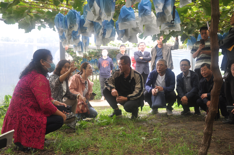 与会人员观摩了晋州市马于镇泽桑农民专业合作社葡萄示范园,示范园主栽品种是经济效益较高的阳光玫瑰。葡萄园采用避雨栽培模式,通过实施我所简易小棚架轻简化栽培技术和增施有机肥技术,阳光玫瑰葡萄优质商品果率达90%以上,效益是巨峰葡萄的数倍,在冀中南葡萄生产中起到了示范引领作用,推动了区域葡萄产业的高质量发展。参会人员在观摩中看到了新技术的实施效果,交流了葡萄种植经验,开阔了眼界,提高了对葡萄种植技术的认知。