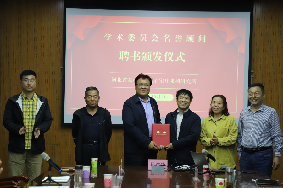 您所在的位置:首页 > 综合动态 2021年10月11日,我所为张绍铃教授和施泽彬研究员举行颁发聘书仪式。聘请张绍铃教授为国家梨改良中心名誉主任,聘请施泽彬研究员为国家梨改良中心学术委员会委员。所长庞昭进为两位专家颁发聘书,他表示,有了两位专家的助力和献言献策,石家庄果树研究所和国家梨改良中心的科研实力和学术水平也将更上一层楼。石果所领导班子、专家顾问、研究室主任和科技骨干共40余人参加了颁发仪式。