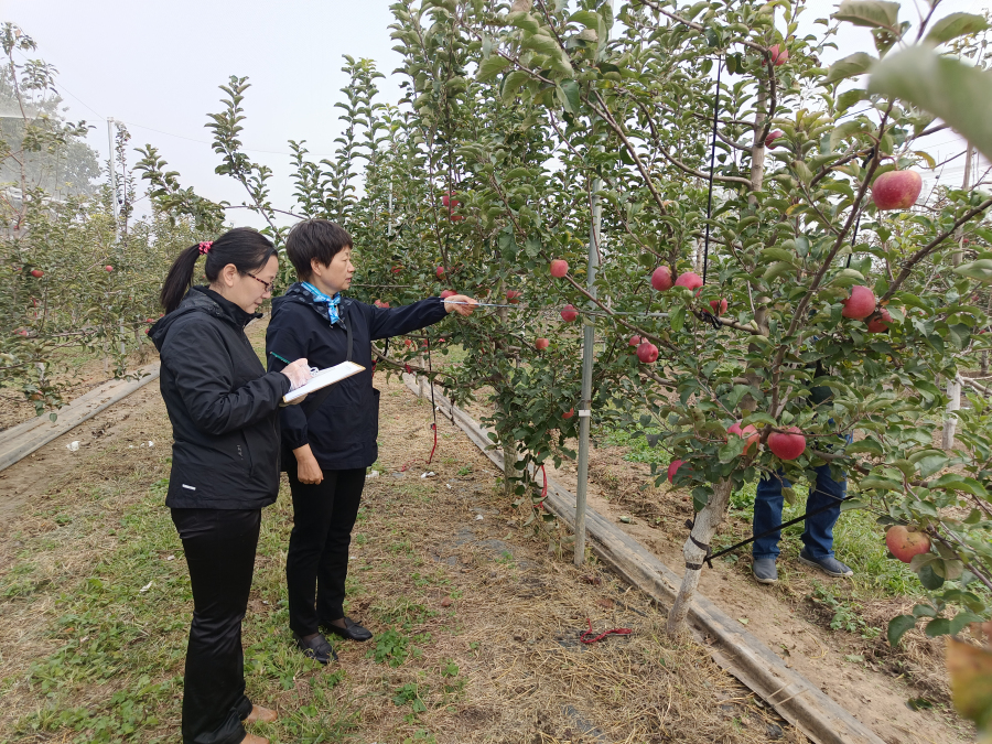 省科技厅农村科技处杨佩茹调研员、院科研部领导莅临指导。项目组邀请省农业农村厅特色产业处王旗研究员、省国有林场和林草种苗工作站王印肖高级工程师、市林业局张力栓研究员三位专家进行了现场检测及点评。会议由我所副所长董辉主持,项目负责人郝婕研究员就项目实施情况进行了汇报。与会专家品鉴了我所自育优系,高度肯定了项目组的科研成果。专家组一致认为通过苹果砧穗组合筛选及配套技术试验,果实品质及产量得到了提升。
