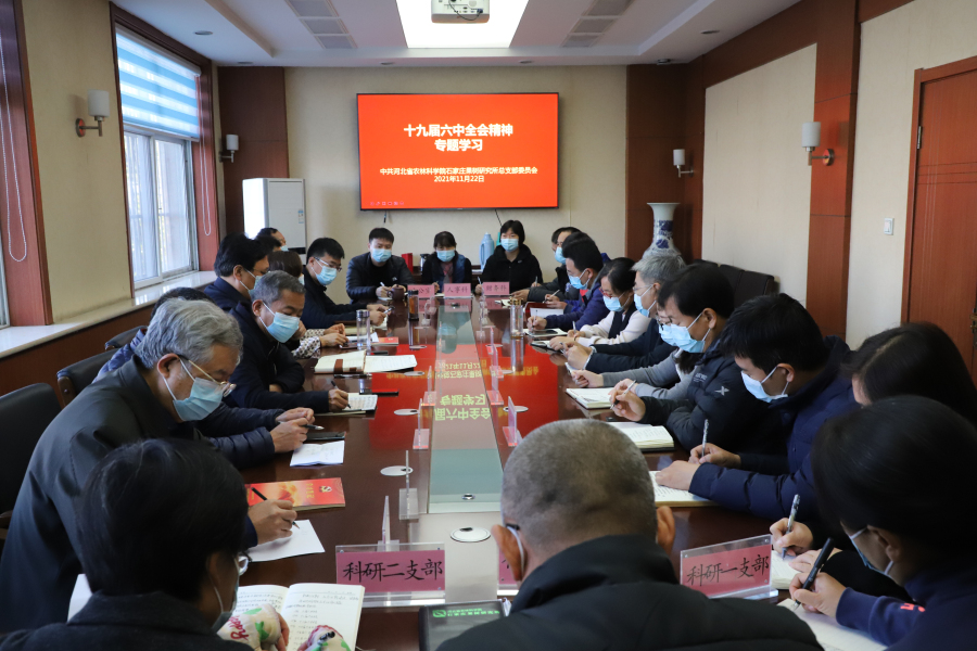 庞昭进所长与大家分享了十九届六中全会精神学习体会,并就如何立足本职工作贯彻落实好全会精神提出了具体要求。他强调,要加强学习,统一思想,将全会精神转化为工作动力。在工作中不断激发创新活力,提升创新实力,增强创新能力,提高成果产出率与转化率。要高质量完成年初既定目标,系统总结今年各项工作,谋划明年工作发展思路,提升研究所在政府和社会的知名度和影响力。