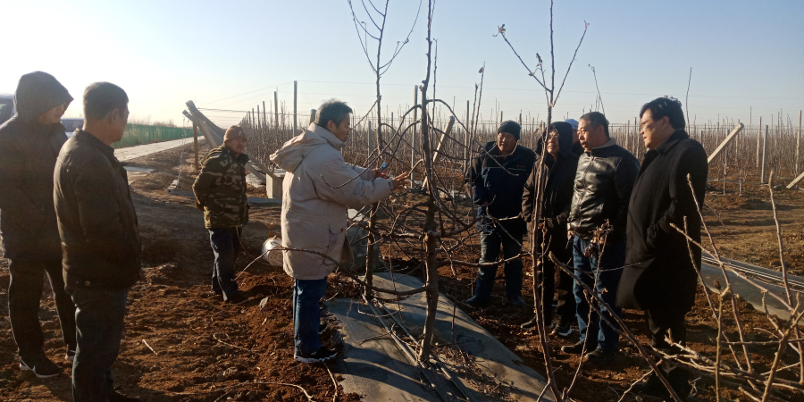 随后,专家们查看了园区果树栽培管理现状,针对果树冬季修剪技术进行了示范与指导,对培养合理的树冠结构,改善通风透光条件,实现早结果、丰产稳产等关键技术进行了详细讲解。