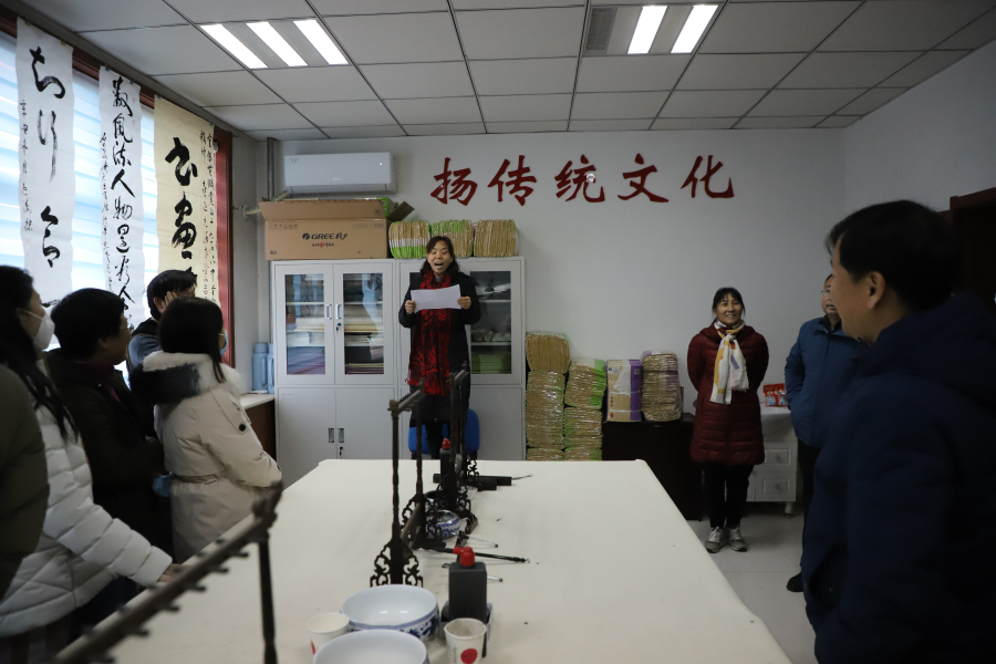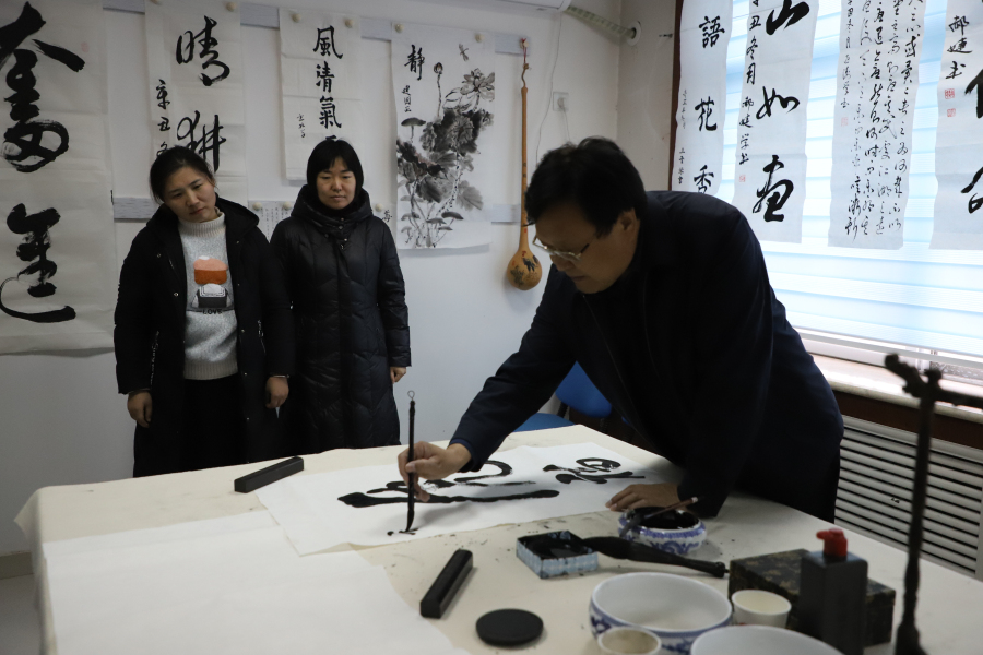 庞昭进所长在为书画展致辞中,代表全体班子成员,向广大职工一年来的辛苦付出表示衷心感谢,回顾了今年取得的突破性成绩,为广大职工送上了新年祝福,并预祝书画展圆满成功。随后大家参观了参展作品,褚凤杰书记朗诵了庞昭进创作的《新时代颂歌》,书法爱好者现场进行了临摹。