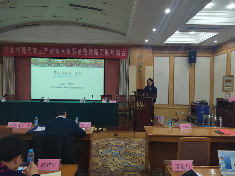 河北省农林科学院石家庄果树研究所杨丽丽研究员作为葡萄设施栽培岗位专家在会上就设施栽培团队成员结构、5年工作设想及2022年工作计划做了汇报。