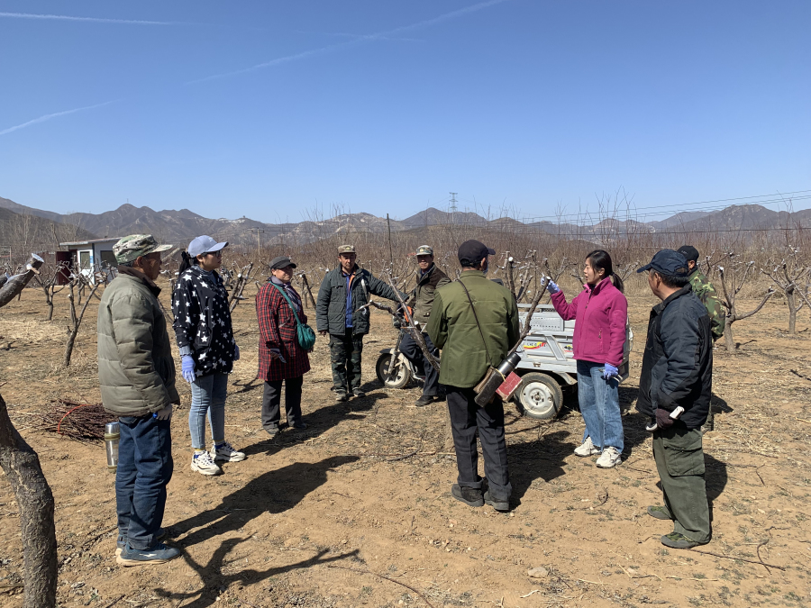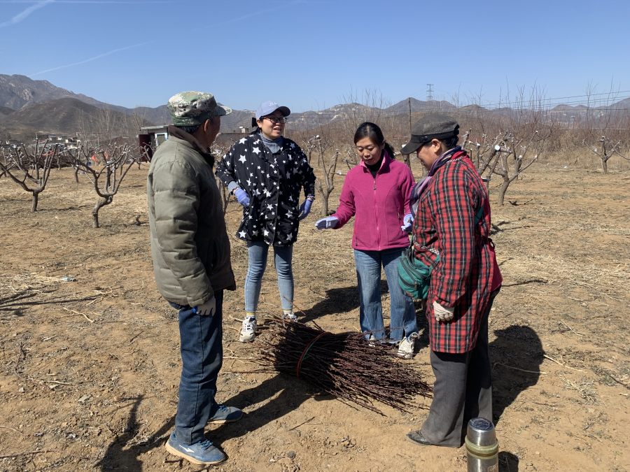 自2021年开始,李杏研究室与南寨村建立了合作关系,大力推广‘金荷’‘冀早红’等鲜食杏新品种(系)。3月5日,团队又为当地送来了新品种接穗,实地查看了杏园区位及老树生长现状后,对旧园改造、品种更新作出了详细规划,并手把手指导果农嫁接方法,掌握提高成活率的技巧。
