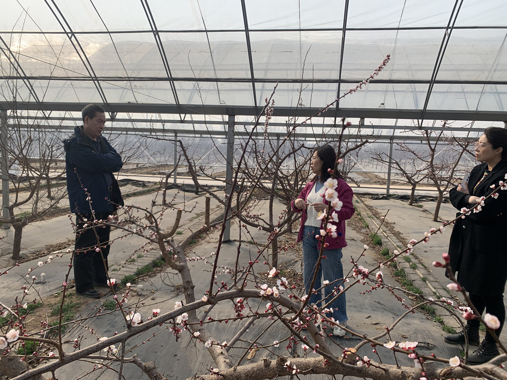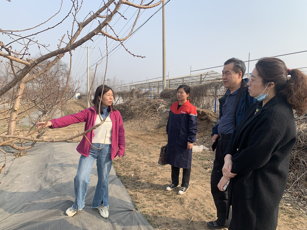 李杏研究室武晓红主任带领工作队参观了我所李杏资源圃。资源圃保存了国内外包括鲜食、加工和仁用品种在内的优良品种100多份资源。武主任介绍了李杏资源圃概况,并带队参观了我所塑料大棚,重点介绍了棚内我所自育品种‘金荷’和‘冀早红’。驻村第一书记郭建华处长介绍了土窑沟村气候、土地及农民原有种植农产品情况。针对该村具体情况,制定了引种计划。