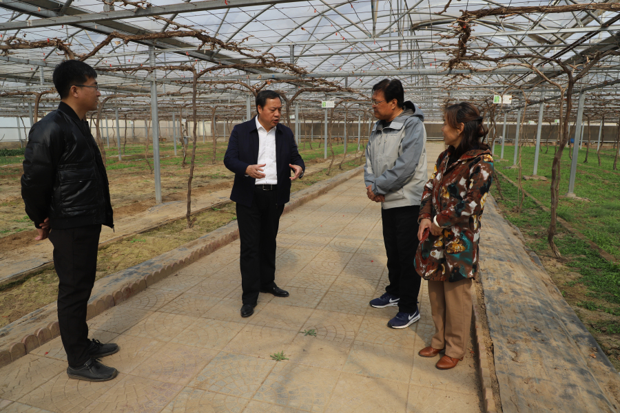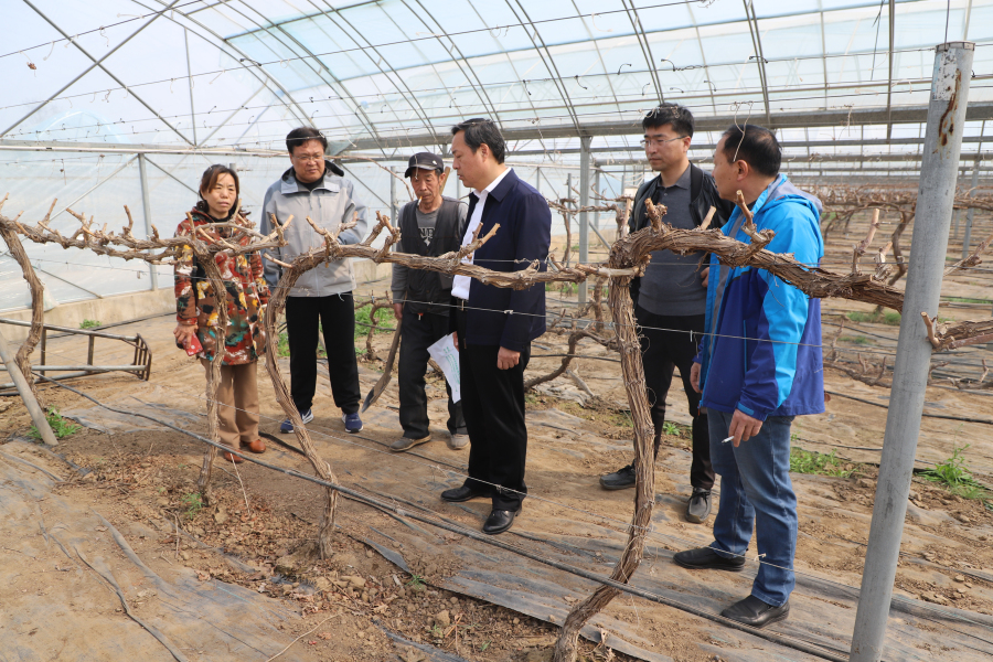 朱现军局长来到我所葡萄示范园区,现场查看了园区建设、苗木培育情况,听取了庞昭进所长关于研究所发展的介绍,褚凤杰书记汇报了葡萄研究室的科研工作,重点介绍了在成果培育、栽培技术模式等方面取得的进展。朱现军局长对研究所的工作给予了高度评价。他强调,一方面要加强品种培育和种苗繁育,积极推进成果转化,另一方面要密切省直各单位间的联系,加大对研究所培育的优良品种和技术的宣传力度,提升研究所的知名度和影响力,真正将科研成果应用到实际生产中去,为河北省乡村振兴和农业绿色高质量发展提供有力的科技支撑。