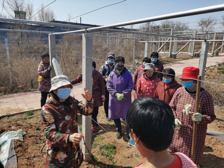 西城仔生态园去年栽植葡萄40亩,有阳光玫瑰、蓝宝石、蜜光等4个品种。褚凤杰研究员详细讲解了病虫害防治、葡萄出土、架型培养的注意事项;同时根据去年蓝宝石葡萄因秋后霜霉病造成落叶导致枝条成熟度不够、成活率较低的情况提出今年管理要点,并回答了果农提问,对当地葡萄产业的健康发展提出了可行性建议。