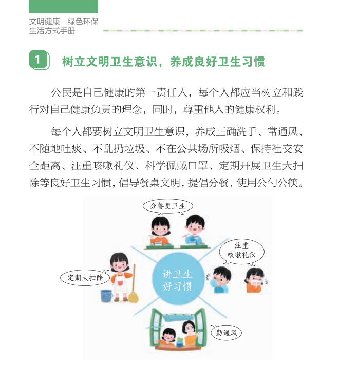您所在的位置:首页 > 通知公告 2022年4月是第34个爱国卫生月,为了让文明健康理念深入人心,现将《文明健康 绿色环保生活方式手册》进行宣传。希望大家积极践行文明健康绿色环保生活方式。