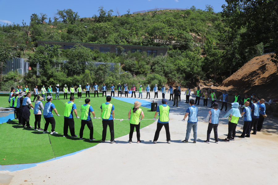 上午8点,工会会员统一乘车来到岗南水库湖畔美丽的小村庄——李家庄。首先,开展了“动力绳圈”“极速60秒”2个团队拓展训练项目,大家在富有挑战性的活动中充分感受了团结协作的力量和挑战自我的魅力。