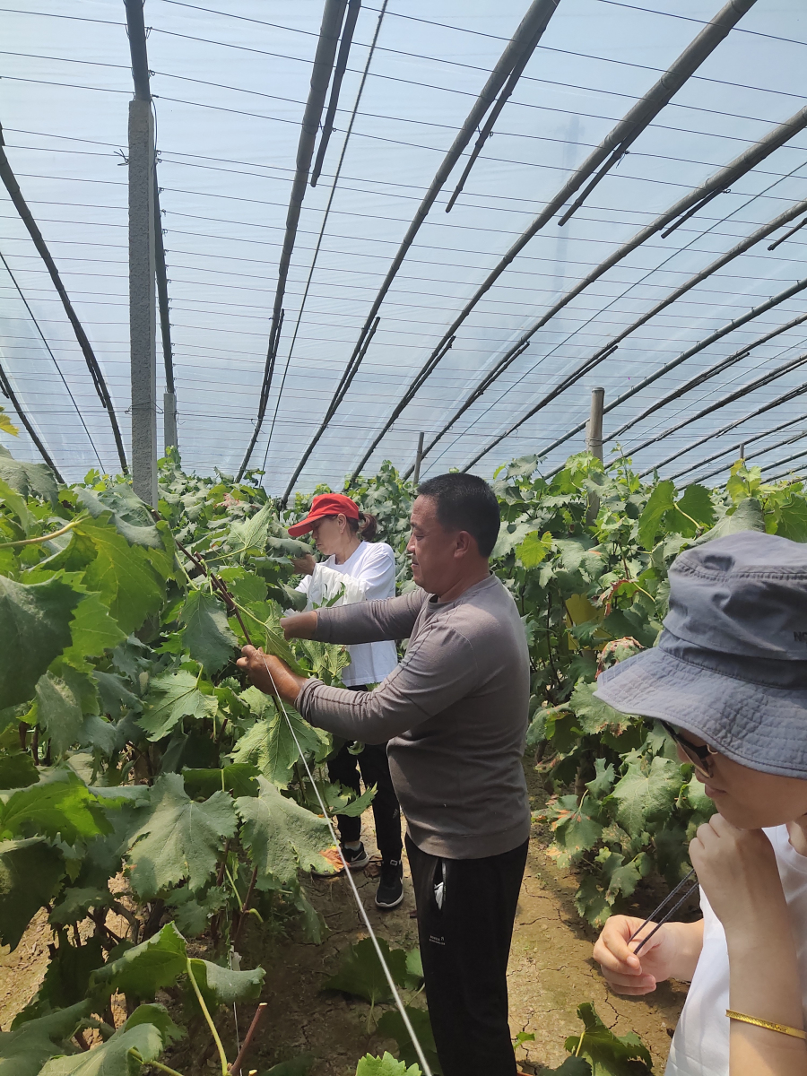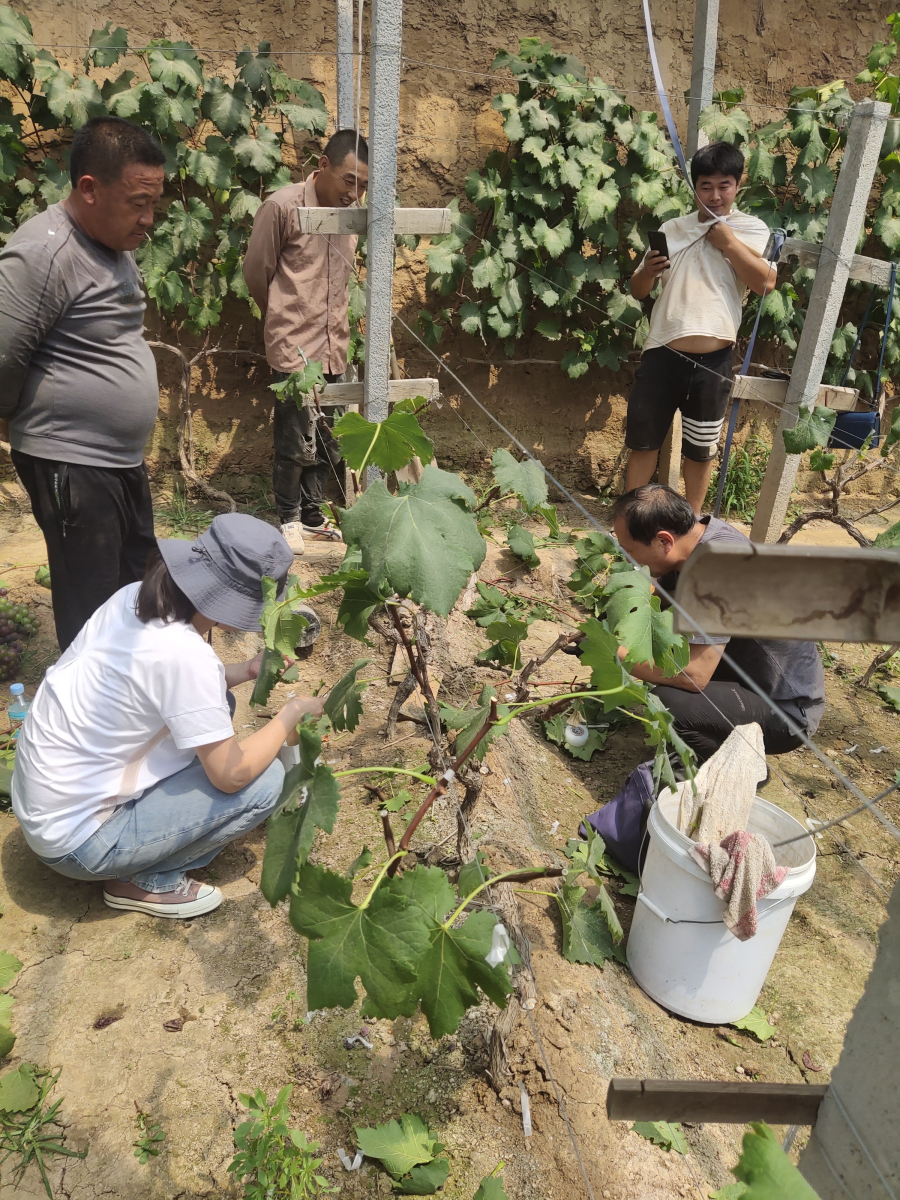 2022年5月25日,葡萄研究团队褚凤杰、杨丽丽一行赴衡水市饶阳县东崔村对当地设施葡萄生产进行技术指导,并开展了葡萄新品系嫁接试验。
