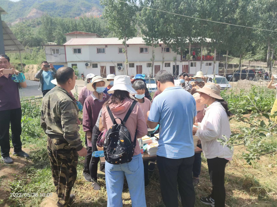 团队成员针对当前苹果套袋前后的疏果、果实袋选择、病虫害防治及套袋后的土肥水等方面管理对技术骨干、果农进行了现场技术培训,并发放了相关技术资料。培训会后,通过详细了解园区的生产经营情况,对近期重点工作进行了安排部署。