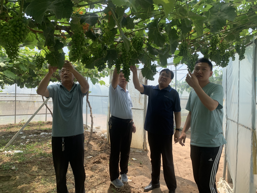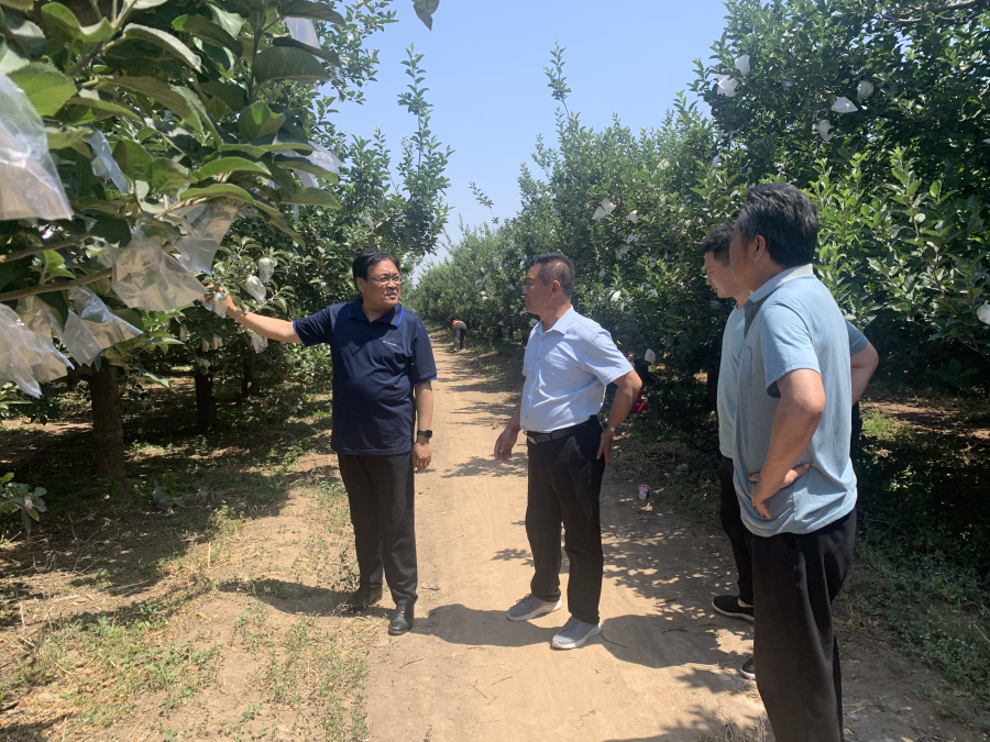 最后,梅庄村主要负责人带领庞昭进所长一行查看了苹果示范区和葡萄示范区,并就苹果优选果实袋技术、葡萄果穗修剪技术落实情况进行了现场调研,针对村干部反应的生产问题,就地协调相关研究团队进行对接,保证技术落实到位。