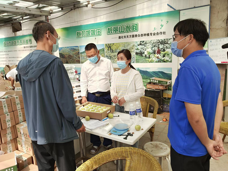 专家一行实地走访了遵化市天方圆香白杏种植专业合作社基地,了解了当地果品生产、销售现状,重点调研了香白品种选育、花果管理、病虫害防治状况及产业发展难题。理事长才秀东介绍称今年香白杏售价为8~15元/斤,价格较为平稳。合作社正在抓紧收购,线上线下同步销售,助力果农增收。目前当地杏产业发展面临两大难题,一是6月初遭遇冰雹恶劣天气,部分香白杏外观受到影响,无法销售,急需开发深加工产品;二是香白杏遇雨易裂果,这一果品特性对销售收益影响巨大。武晓红专家表示开发深加工产品是提高果品收益的重要途径,将协助合作社与加工企业对接,开发冻干、速冻果粒、杏浆等产品;针对香白杏易裂果的特性,还需从品种改良入手,从当地香白群体中优选不易裂果的单株,扩繁后经多点试验,选育出抗裂品种。