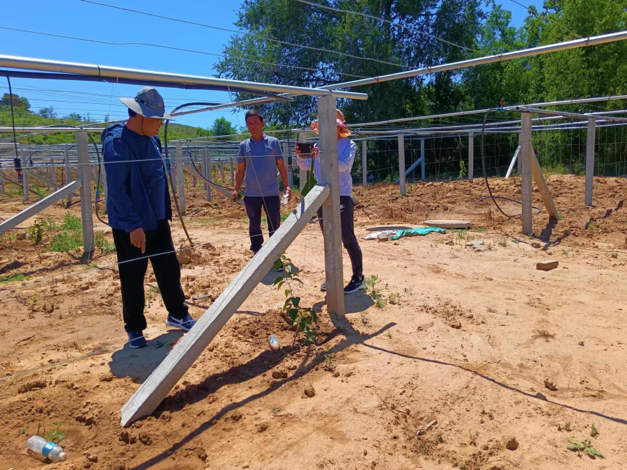您所在的位置:首页 > 综合动态 6月24日,我所专家团队赴行唐县口头镇西寺庄村软枣猕猴桃示范基地及口头镇东寺庄猕猴桃廊架栽培实验基地进行调研指导。专家一行查看东寺庄廊架栽培基地,现场为当地种植户讲解了廊架栽培技术要点及夏季修剪技术要领;在西寺庄村软枣猕猴桃基地,为提高幼苗成活率,向果农讲解了生草保墒,高喷降温等栽培管理措施,当地果农受益匪浅。