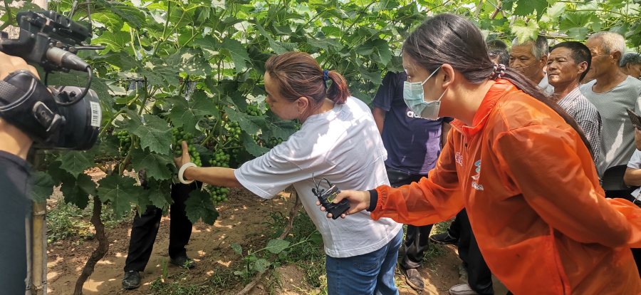 您所在的位置:首页 > 科技服务 2022年7月1日,受《乡村服务社》栏目邀请,葡萄专家褚凤杰一行赴晋州市东里庄镇大里丰庄村进行设施葡萄阳光玫瑰的果穗整形技术培训。