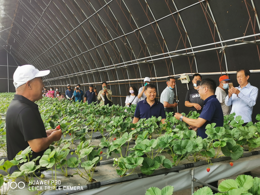 与会学员实地参观了承德市百瑞农业科技有限公司隆化四季草莓的生产情况,杨雷研究员现场解答了学员们提出的疑难问题。