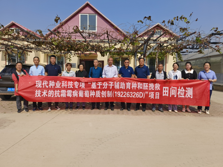 您所在的位置:首页 > 综合动态 2022年9月29日,河北省科学技术厅组织邀请河北省林业和草原科学研究院、河北省农林科学院资源与环境科学研究所、河北省植保植检总站相关专家组成田间检测组,对我所承担的河北省科技厅现代种业科技专项课题“基于分子辅助育种和胚挽救技术的抗霜霉病葡萄种质创制”(19226326D)实施效果进行了田间检测。