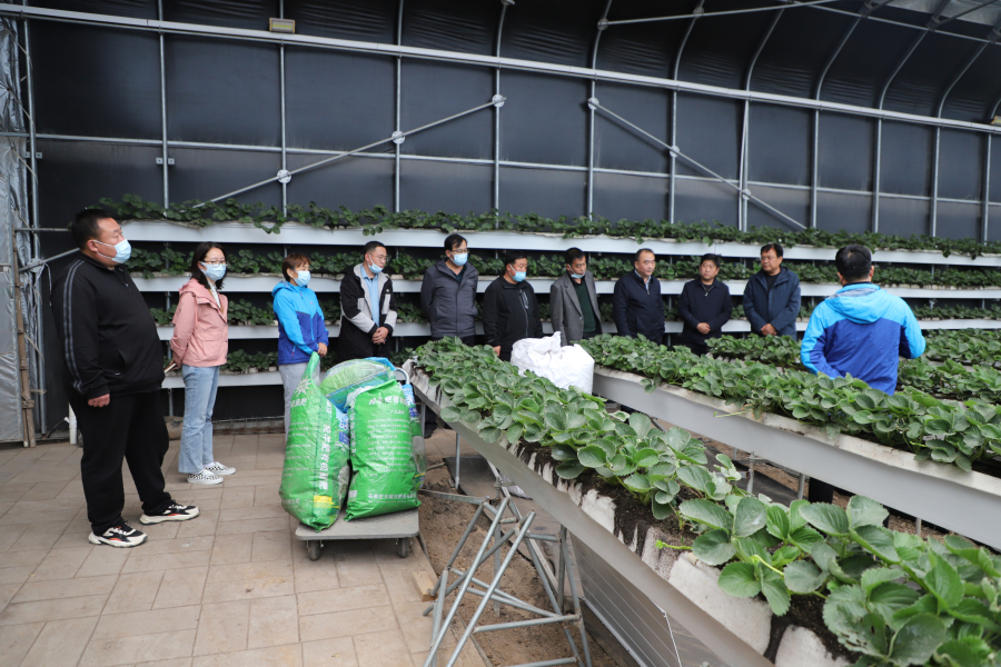 最后,李立强一行参观了我所草莓日光温室、葡萄日光温室,与石家庄果树研究所相关科研人员就设施农业发展进行了交流。