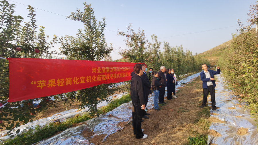 2022年10月25日,河北省科学技术厅组织相关专家,赴石家庄鹿泉区东焦果园对我所承担的河北省重点研发计划项目“苹果轻简化宜机化新型栽培模式创新集成与应用”进行了现场观摩。河北省现代农业产业技术体系苹果创新团队首席专家、省农科院副院长张建军,省科技厅农村处一级调研员杨佩茹,省农业特色产业技术指导总站站长聂承华,省农科院科研管理部副部长李耀发,我所副所长董辉及相关科研人员,河北大桓渊农业有限公司企业代表与果农参加了现场观摩。