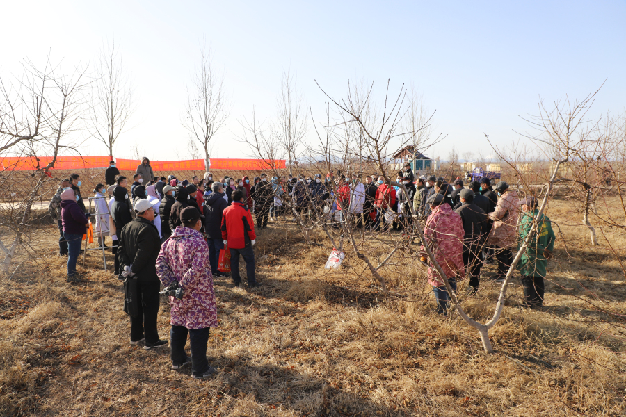 沐浴着早春的阳光,呼吸着新鲜的空气,大家来到活动基地——灵寿县仙桃谷,开展一场与大自然亲近、与果树对话的联学共建实践活动。本着“老带新 传帮带”的原则,采取两人一组的方式进行果树修剪,同时专家组成员进行现场巡视,随时解答,指导修剪人员的技术问题。活动现场,有的人在剪、有的人在锯、有的人指挥、有的人在树下收拾残枝,灵寿仙桃谷桃树地里呈现出一片繁忙景象。在去程路上,进行了关于果树修剪、党的二十大精神等方面知识问答互动。