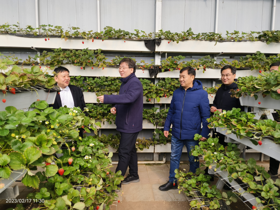 正定县南牛镇书记孙亚坤,我所桃研究室主任王跃辉及草莓研究室成员陪同调研。