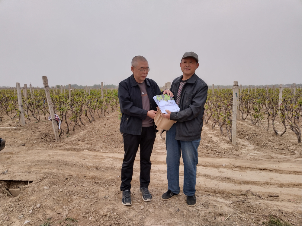 您所在的位置:首页 > 科技服务 2023年4月13日,葡萄研究杨丽丽、宣立锋一行到邢台市威县洺州镇戚霍寨村和胡家屯村调研指导,现场指导露地葡萄春季栽培关键技术,并发放技术资料《葡萄栽培关键技术问答》100册。