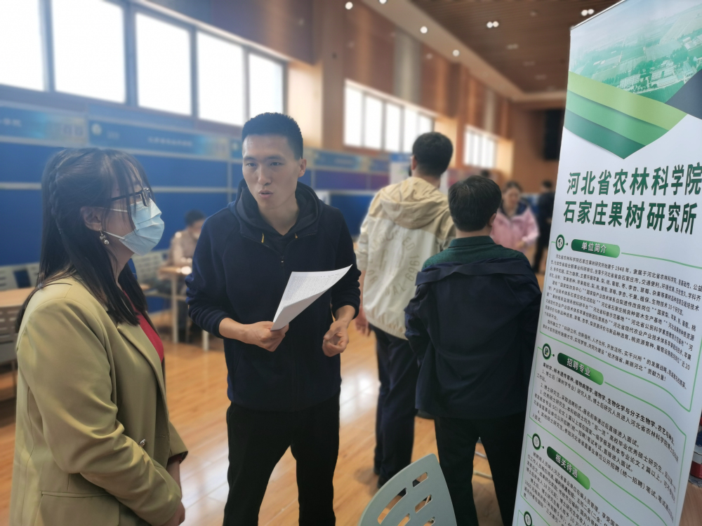 您所在的位置:首页 > 综合动态 为持续做好人才引进工作,推进人才强所战略,2023年4月26日,党总支书记褚凤杰带队参加了在中国农业大学举行的“第八届全国农业高校、科研院所高层次人才引进洽谈会”。此次洽谈会吸引了来自中国农业大学园艺学院、农学院、植物保护学院等学院的应届硕博毕业生来到石家庄果树研究所展位咨询。人事科工作人员与学生们进行了交流洽谈,就学生关心、关注的问题一一进行了解答。经过筛选简历、综合考量,后续研究所会重点对与本所发展需求契合度较高的学生保持联系,真诚欢迎高层次人才加入研究所,助力研究所发展。
