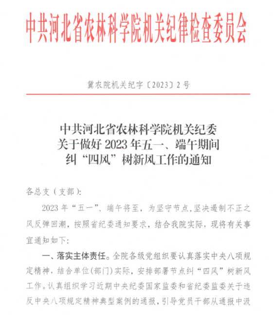 关于做好2023年“五一”、端午期间纠“四风”树新风工作的通知