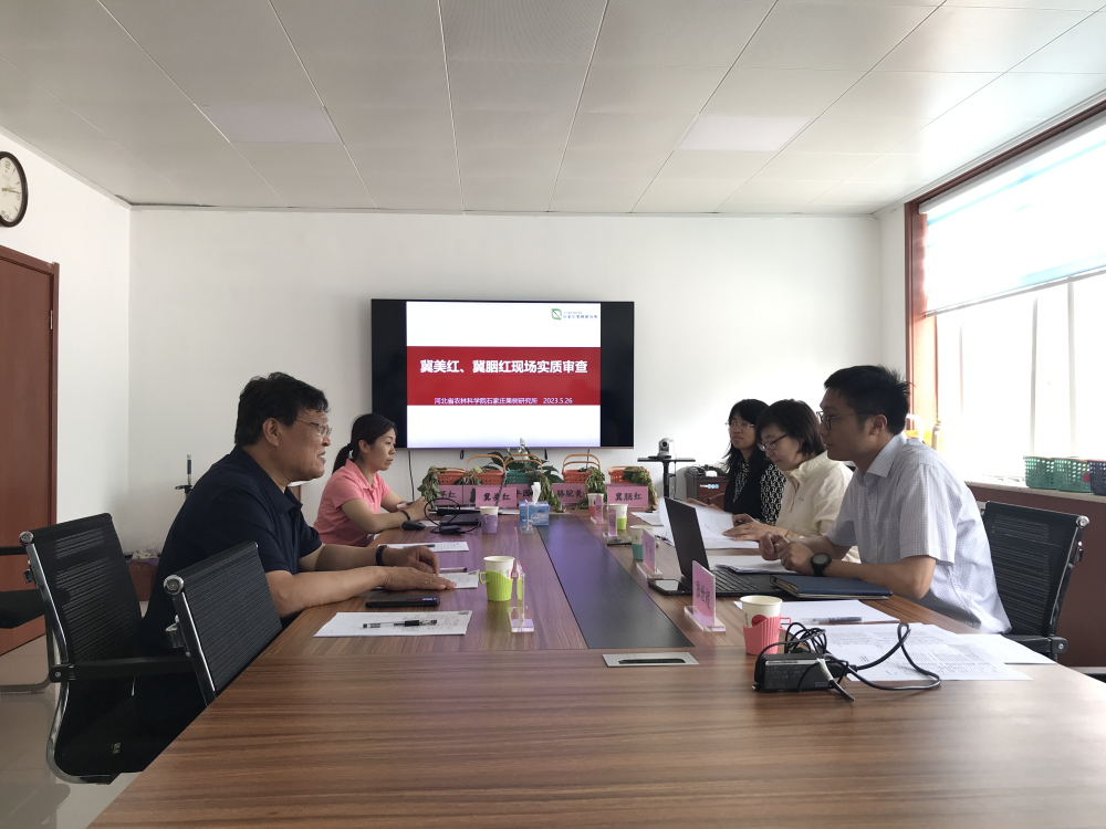 2023年5月26日,国家林业和草原局植物新品种保护办公室组织专家组,对‘冀美红’‘冀胭红’进行了实地审查。与会专家一致认为与对比品种相比,‘冀美红’‘冀胭红’在叶片和果实等性状上具有特异性;观测到的植株无异形株,具备一致性和稳定性,符合植物新品种条件。
