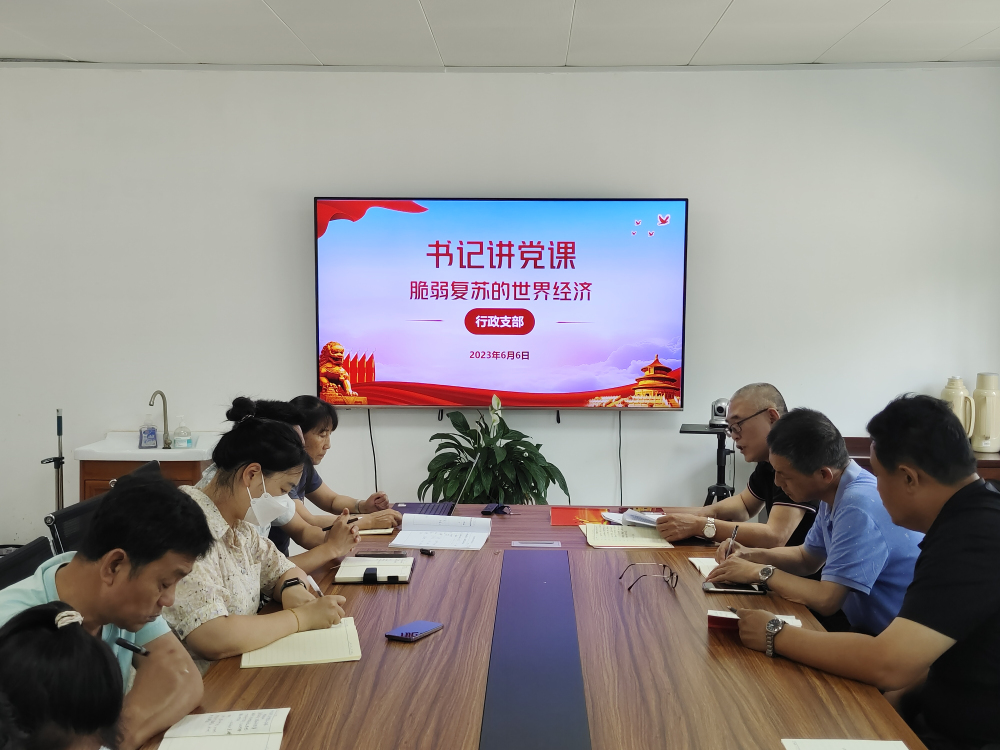 支部书记宣立锋带领全体党员学习了习近平新时代中国特色社会主义思想的核心要义,包括“十个明确”“十四个坚持”“十三方面成就”,以及贯穿其中的立场观点方法——“两个结合”“六个必须坚持”。随后,宣立锋书记为大家讲述了党课——“脆弱复苏的世界经济”,介绍了当前世界经济运行的特点与变化、面临的风险与挑战,结合支部党建工作实际,从深刻领会党的二十大主题、重要成果和重大意义、深刻领会中国式现代化的中国特色、本质要求和重大原则、深刻领会全面建设社会主义现代化国家的目标任务等几个方面,为大家上了一堂生动翔实、内涵丰富的党课。他要求,支部党员要积极投身主题教育,努力学习,将理论学习与实践融会贯通,紧密联系实际,围绕中心、服务大局,推动行政支部工作持续发展。