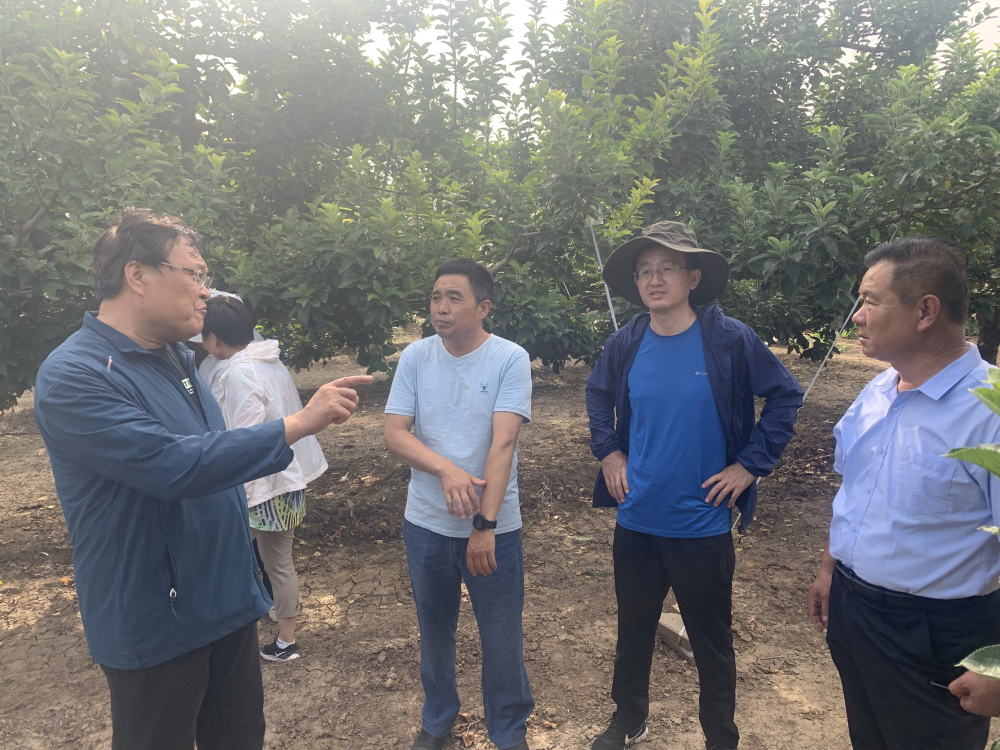 我所研究团队首先实地查看了梅庄村苹果示范园、葡萄示范园、农业废弃物粉碎加工场地等,调研了工作落实情况,并现场进行了相关技术培训。随后,召开了座谈会,会上听取了梅庄村支部书记近期关于乡村振兴工作的进展情况、存在问题及下一步工作计划。同时,征询了示范户、村民代表在乡村振兴工作推进过程中遇到的技术难题和好的意见建议。并就参会代表集中反应的果树修剪、近几年连续坐果率低、多效唑等生长调节剂使用等技术问题进行了现场研讨和技术指导。