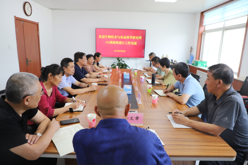 您所在的位置:首页 > 综合动态 2023年8月3日,生物技术与食品科学研究所党总支书记陈保华一行到我开展工作交流。调研座谈由我所党总支书记褚凤杰主持,褚凤杰对陈保华一行的到来表示欢迎,介绍了研究所党总支情况及研究所在科技创新、科技服务、人才建设、制度管理等方面基本情况。双方就党建、科研、管理等工作进行了交流,围绕“结合科研抓党建,抓好党建促科研”工作方法展开探讨。陈保华表示,此次座谈收获颇丰,今后会加强与石家庄果树研究所的沟通交流,寻找合作机会,共同进步。会后,陈保华一行参观了石家庄果树研究所科技展厅。